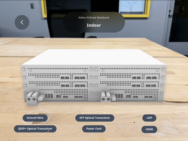 This project aims to develop an AR training platform to field technician and technical manager, and deliver a more cost effective, engaging, and richer learning experience in scenarios where access to the real cell site environment.